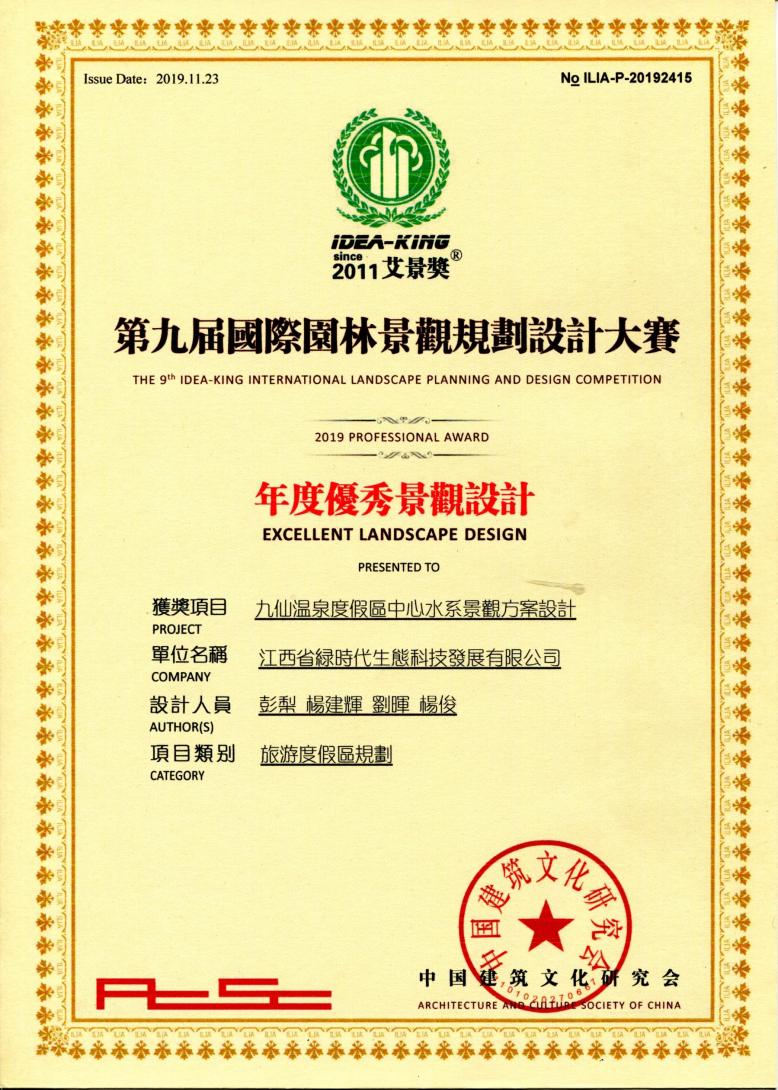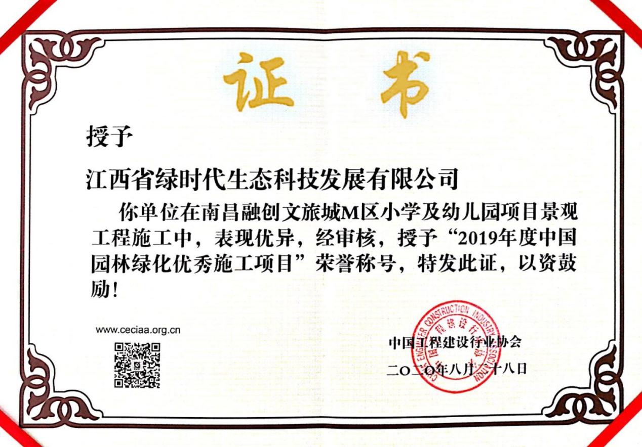 ? ? ? ?工匠精神筑標(biāo)桿。綠時代擁有一支技術(shù)精湛的市政、園林景觀設(shè)計團(tuán)隊和施工隊伍,先后參與了多個重大綜合性項目的設(shè)計和施工,充分展現(xiàn)綠時代公司市政、園林景觀設(shè)計、施工、養(yǎng)護(hù)等各方面的綜合實力。九仙溫泉度假區(qū)中心水系景觀方案設(shè)計榮獲第九屆國際園林景觀規(guī)劃設(shè)計大賽;2019年度優(yōu)秀景觀設(shè)計獎;南昌融創(chuàng)文旅城M區(qū)小學(xué)及幼兒園項目景觀工程施工項目,被中國工程建設(shè)行業(yè)協(xié)會授予2019年度中國園林綠化優(yōu)秀施工項目榮譽(yù)稱號。
